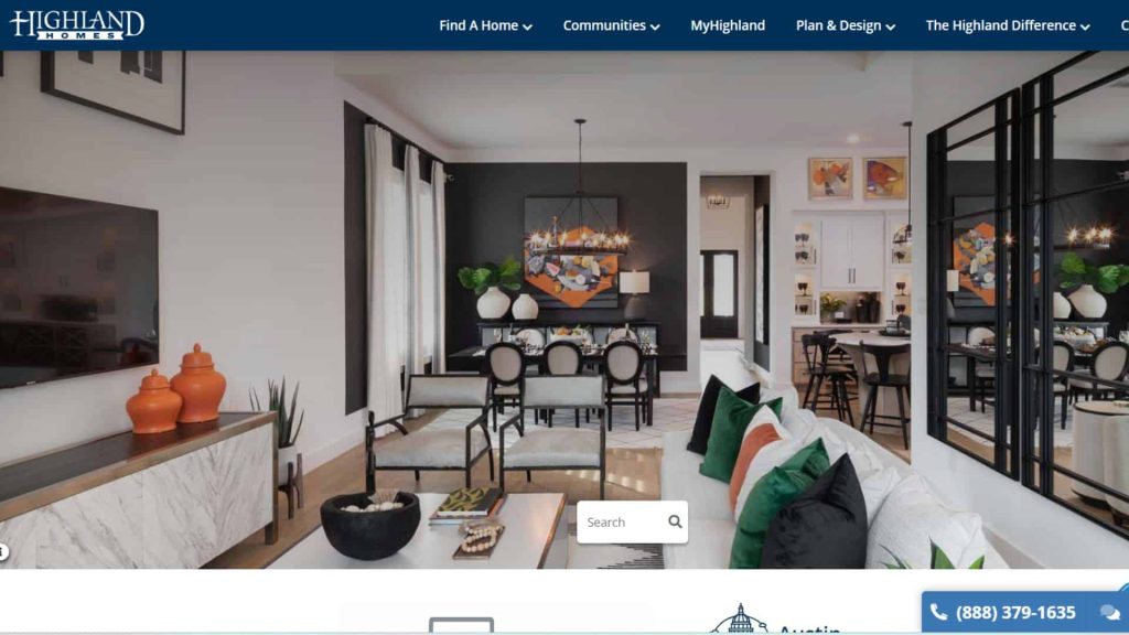 Highland Homes has crafted a polished and user-centric website with intuitive navigation, clean design, and luxurious home images. The limited color palette maintains a sleek and professional look.
