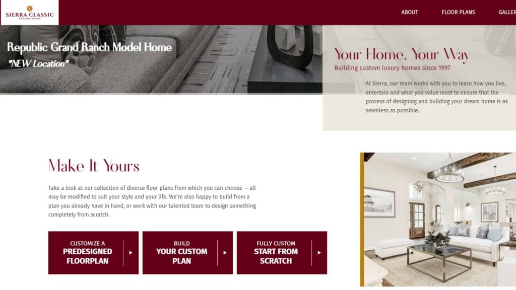 Sierra Classic Custom Homes has crafted a polished website that professionally showcases their high-end homes through a clean and visually appealing design with luxurious images.