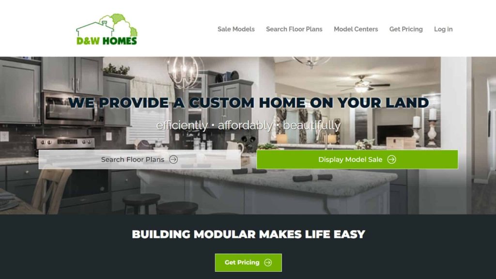 D&W Homes has created an engaging and visually appealing website with a clear focus on modular homes. The site features clean and simple navigation, high-quality images showcasing different designs, and a concise upfront message.