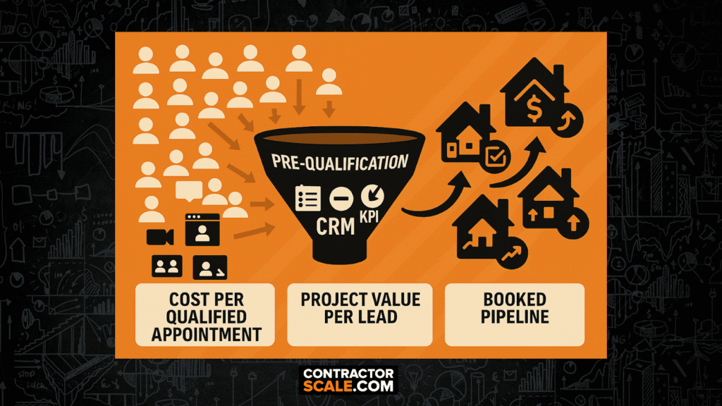Focusing on the right KPIs is what separates leaders from the pack. Cost per qualified appointment shows what you’re investing to actually speak with serious prospects—not just anyone who fills out a form. Project value per lead points efforts toward work that grows profit, not just your workload. The size and quality of your booked pipeline is the real measure of success, telling you how much business is moving forward—not just how many hours are spent chasing noise.