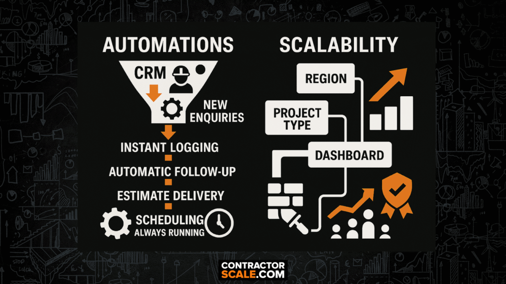 Managing leads can be the most time-consuming part of growing a construction business. By incorporating CRM and sales automation tools, every enquiry is logged automatically and prompt follow-up is ensured. Automated estimate delivery and streamlined scheduling cut unnecessary admin, allowing you or your staff to focus on the jobs that count. The system works in the background; you remain present for your clients.